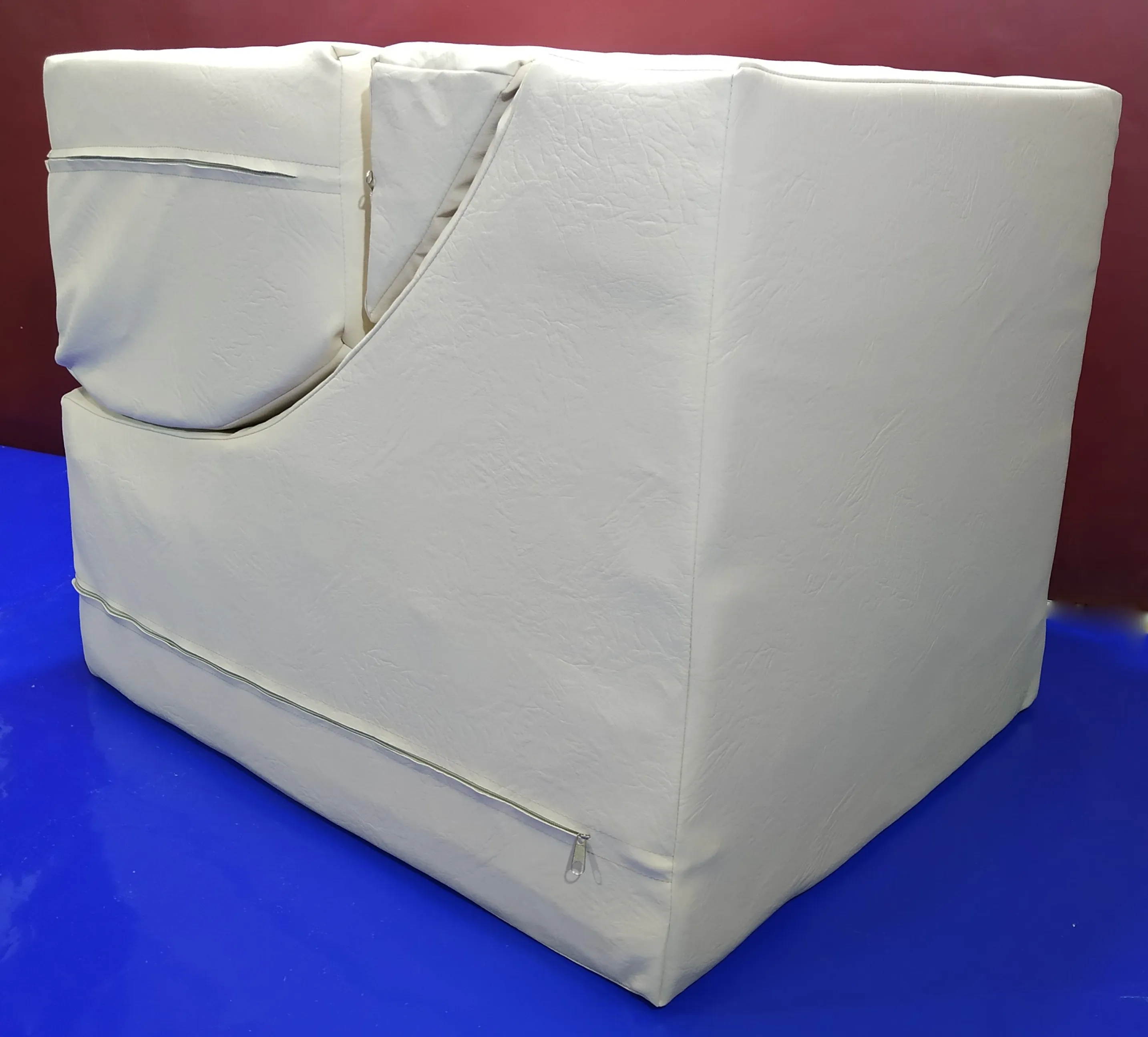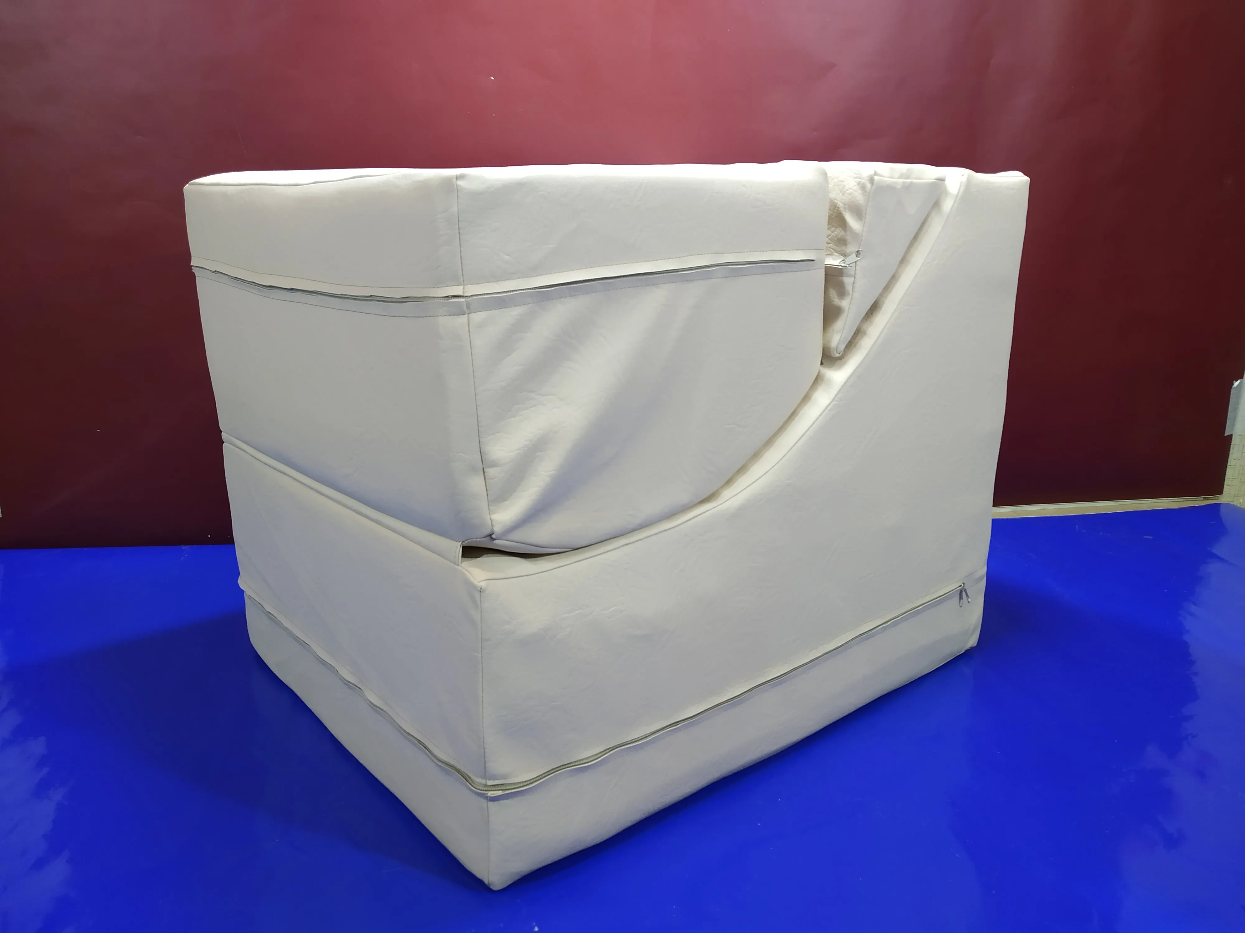 При раскрытии куб превращается в кресло с изгибами, повторяющими форму тела.