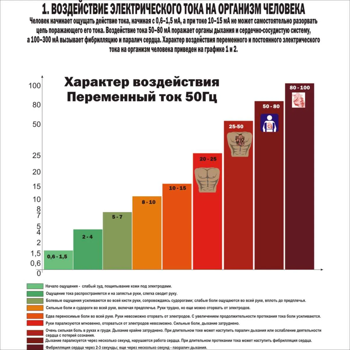 1. Воздействие электрического тока на организм человека.